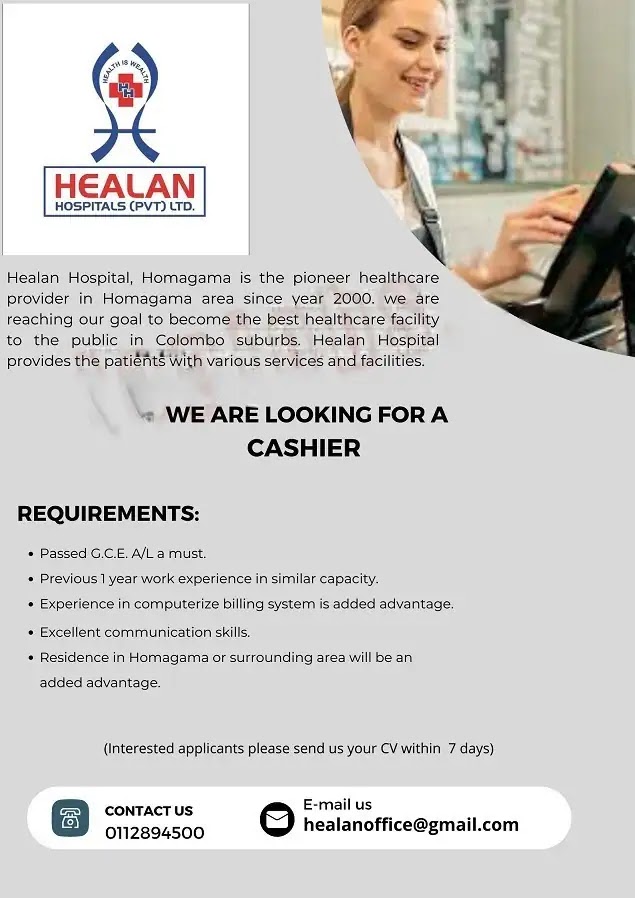 Post of Cashier – Healan Hospitals (Pvt) Ltd